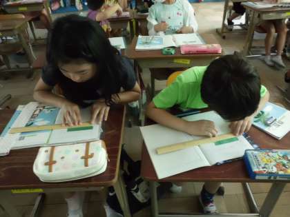 今日は「10センチの長さってどれくらいだろう。」と予想を立てて,そのあと実際に計ってみるという学習をしました。