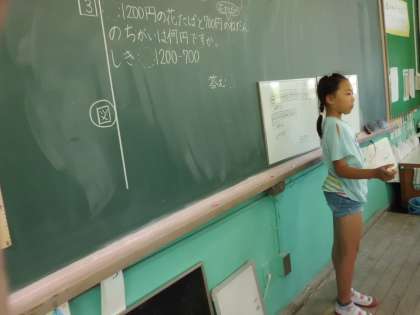 今日は位の大きいひき算の仕方について考えました。100円玉に置き換えて図をかくと,位が大きくても答えを出すことができますね。