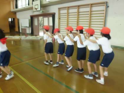 今日は,学年でフォークダンスをしました。ジェンカやコロブチカ,マイムマイムの音楽に合わせて「みぎ・みぎ・ひだり・ひだり」とリズムよく踊りました。みんな,前回よりも上手になっていました。