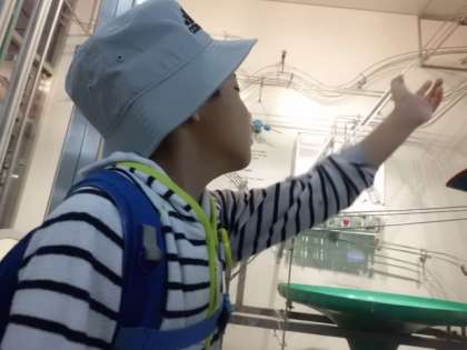全員合流後は,一緒に野外展示物で活動したあとに,チョウの館へ行きます。