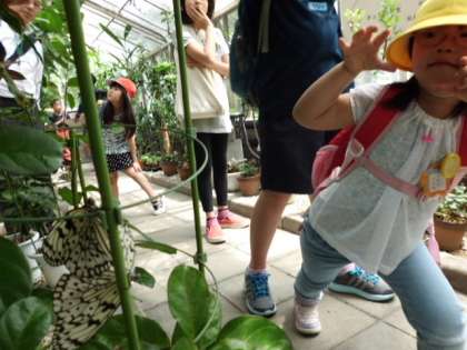 チョウの館では,白い大きなチョウがたくさん飛んでいました。