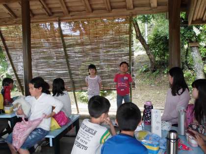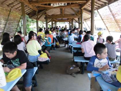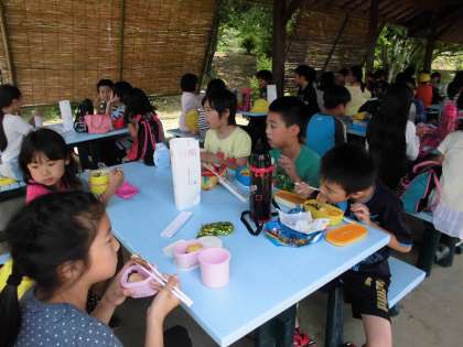 さあ,みんなも到着して,初めての食事「お弁当」です。食事係が「いただきます!」をしてくれました。