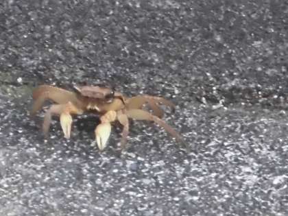 の歓声に応えて,みさきのアイドルかにさんを紹介します。