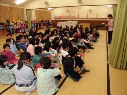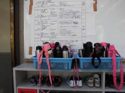 寝具の始末,靴や水筒の扱い,もちものの整理・整頓…自分のことは自分でしなければいけない,宿泊行事ならではの課題に奮闘中です。外は,気持ちの良い青空が広がっています。