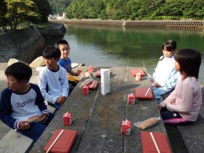 朝のつどいが終わったら,朝食です。