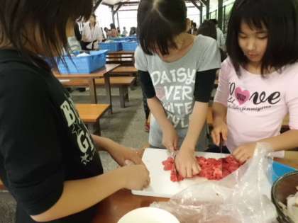 今日の夕食は,「すき焼き風煮」を自分たちで作ります。