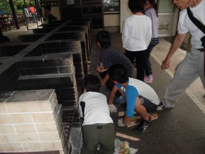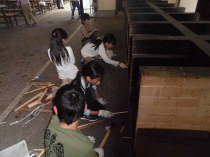 材料が鍋に全部入ったら釜戸に火をつけます。