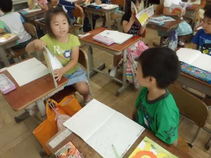 「これはなんのくちばしでしょう。」「これはきつつきのくちばしです。」と問題の出し合いをしました。「くちばし」の中にはきつつき,オウム,ハチドリの3羽の鳥が登場していることが分かりました。