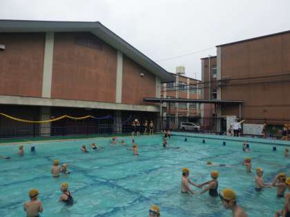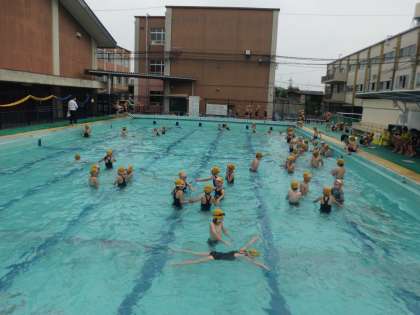 今日から水泳学習がはじまりました。今日は3クラス一緒にプールにはいって,体ならしのしかたや浮く動き,進む動きなどを確かめました。次の時間から2クラスずつプールに入り,自分のめあてに沿って活動していきます。