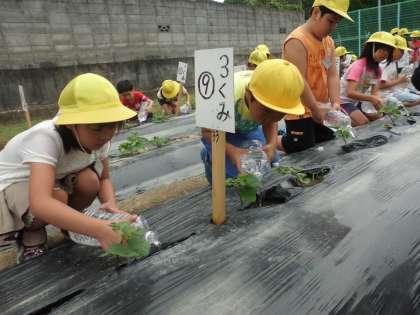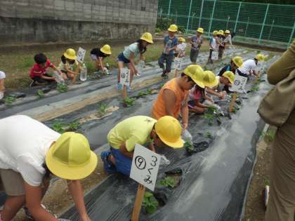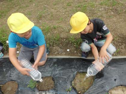 ずっと雨が続いていたので,久しぶりの水やりです。畑に行くまでに「どうなっているかな。」「大きくなっているといいな。」という声が聞こえていました。久々に見るサツマイモはどうでしたか。大きくなっていたかな。
