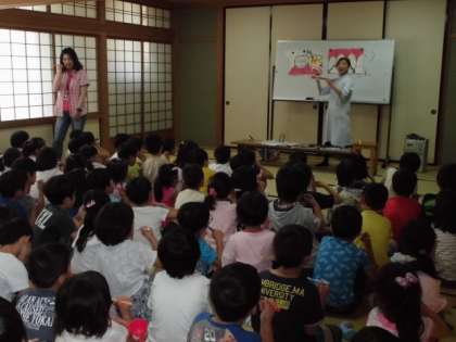 歯科衛生士の方に来ていただいて,指導を受けました。口の中で汚れのたまりやすい所や歯ブラシのかえ時のチェックの仕方,正しい歯みがきの仕方などたくさん教えていただきました。