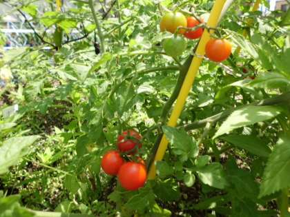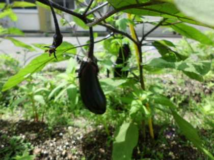 雨があがると強い日差しが照りつけます。花壇でも夏の野菜が実り始めています。見つけてみましょう。