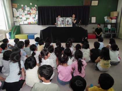 中間休みに川岡文庫で,読み聞かせがありました。いつもありがとうございます。