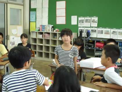 今日から前期前半が始まりました。夏休みに制作した作品をみんなで鑑賞しました。作品の紹介と工夫した点を発表しました。作品からは,子ども達の頑張りが伝わってきました。