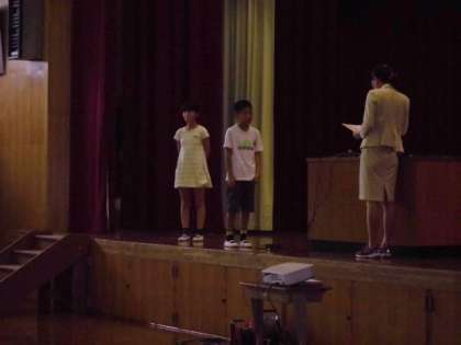 朝会後,夏休み中の部活の全市交流会で頑張り,表彰してもらえた人もありました。がんばりましたね。