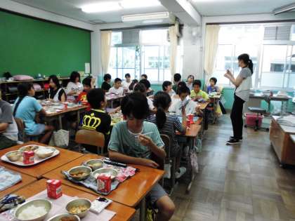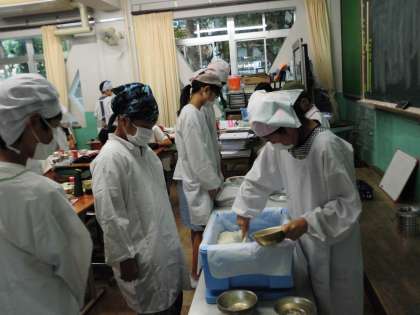 さすが,高学年,給食の準備も慣れた手つきで手際よく進めて