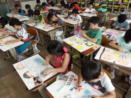 9月7日 図画工作科 「おじいちゃん おばあちゃんのえをかこう」