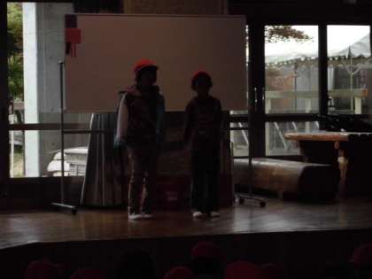 今日は川岡小だけの朝の集いです。みんな5分以上前に集合できました。