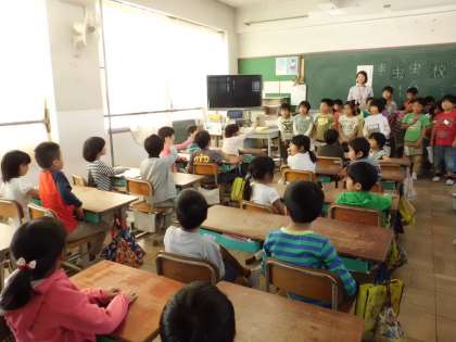 今日は,3年生が国語「進行を考えながら話し合おう」の学習で,1年生に伝えたいことを話に来ました。グループ毎にお話のテーマが違いますが,どのグループも3年生の話を真剣に聞いていました。最後にポスターをもらい,喜んでいました!