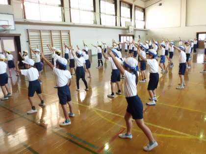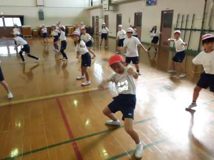 今日は,体育館でダンスの練習をしました。そして,実際に踊る場所にいって踊りました。覚えられたかな?