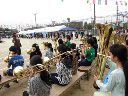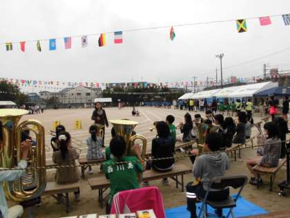 天気が心配されましたが,雨もあがり,区民体育祭が行われました。金管バンドの演奏にあわせて入場したあとは、いよいよ競技がはじまります。