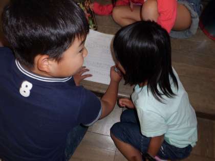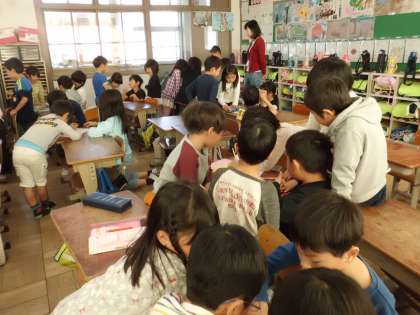 11月2日の校外学習で一緒に活動するグループで集まり,約束や一緒にしたいあそびを話し合いました。先週たてわりあそびで活動していたので,すぐにうちとけて楽しそうに交流していました。