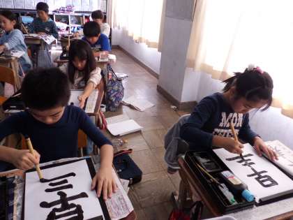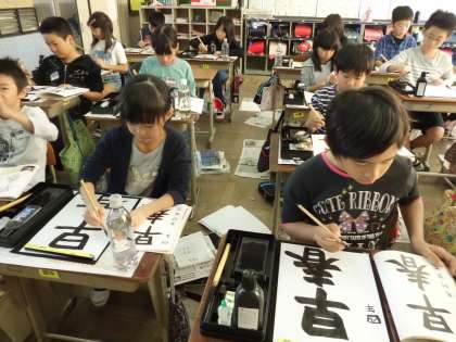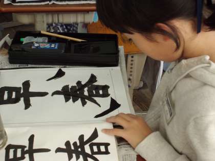 今日は,少し早いですが,「書き初め」をしました。「早春」をバランスやはらいにきをつけながら書きました。