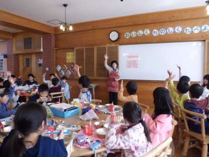 そのあとのランチルームでも,給食をおいしくいただきました。