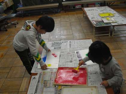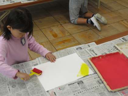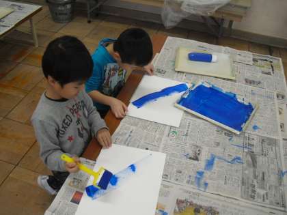 今日の図工は版画の背景をつくっていきます。どんな背景にしようかな?