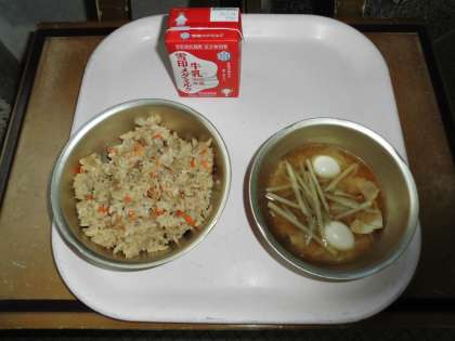 ということで,12月4日は,自校で炊飯する「たきこみ五目ごはん」