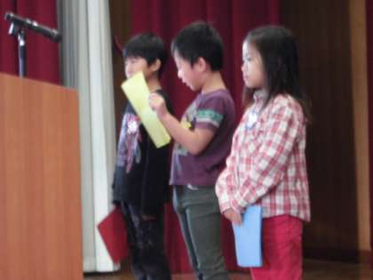 1年生は「さっちゃんのまほうの手」を学習しました。やさしい心,思いやりのい心で友だちとなかよくすることを発表しました。