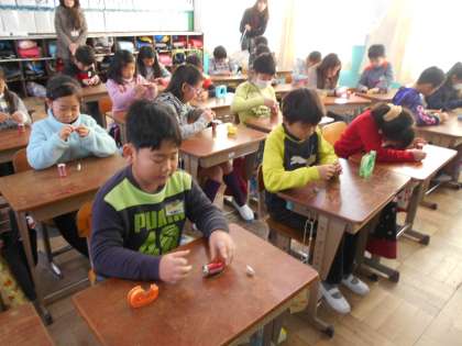 1月19日 3年 理科「豆電球にあかりをつけよう」