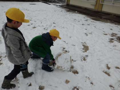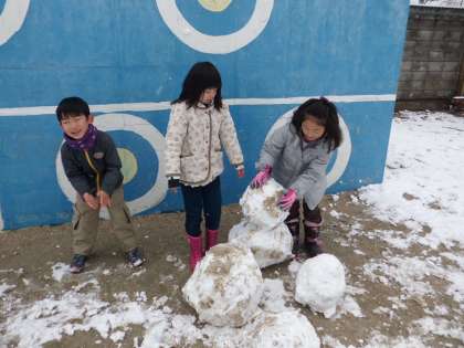 今年度初めての雪にみんな大喜びでした。