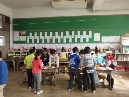 明日のおみせやさんごっこに向けて,今日はお店番をきめたり,お客とのやりとりの練習をしました。品物カードだけでなく,お店の看板やちらしもグループで作ってきました。明日の本番が楽しみですね!