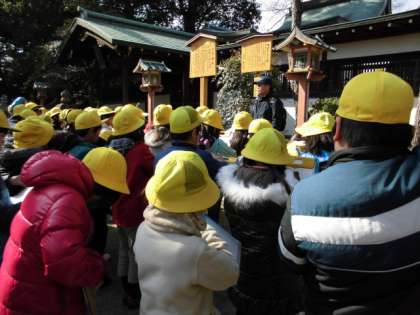 三宮神社に到着しました。三宮神社にたどり着くまで,道が曲がりくねっていて方角が分からなくなったと話している子どもたちもいました。昔の人はどうしていたのでしょう。