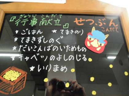 「手巻きずし」を考えました。給食当番のみんなも節分献立に