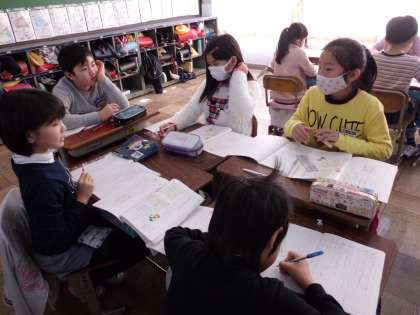 今日は,目的に応じたメモのとりかたについて,グループで話し合いました。それぞれが,意見を出し合っていました。