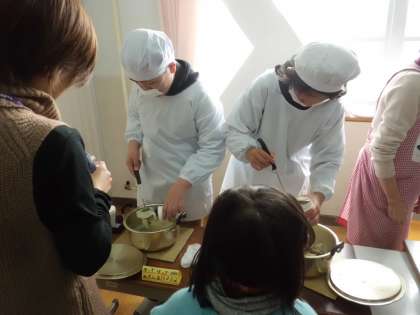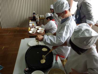 おいしいおにぎり,ほっかほかのおみそしる,ふわふわホットケーキ,つめたいドリンクを売りました。