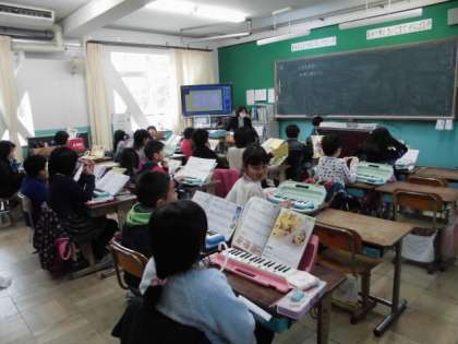 音楽です。上達した「けんばんハーモニカ」や合奏ができるようになったのを聞いてもらいました。