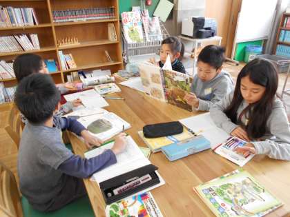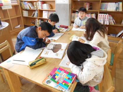 図書室で昔の道具について調べています。どんな道具があるかな?