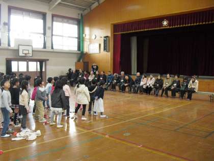 今日はむかしあそびの学習でお世話になった地域のみなさんをお招きして、お礼の会を開きました。