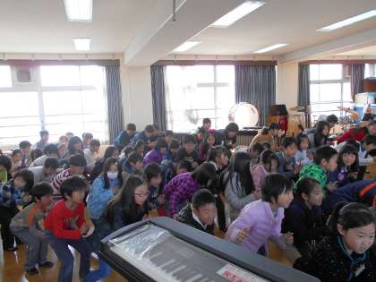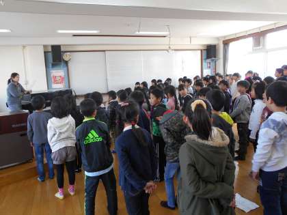 今日は音楽室で6年生を送る会の練習をしました。ダンスもしたり,大きな声で言葉を言ったりと,みんな一生懸命がんばっていました。