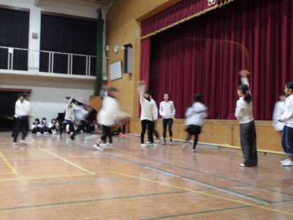 川岡小学校の子どもたちは,うさぎの国に迷いこんでしまいます。そして,女王様を喜ばせるために,様々なことが行われます。まずは,縄跳びです。