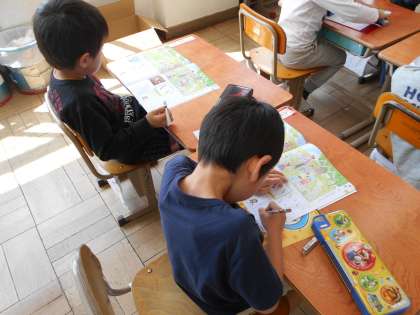 今日はひらがなの「い」の練習をしました。正しい鉛筆の持ち方は,もうばっちりですか?今日から宿題がはじまります。花まるめざしてがんばってね!
