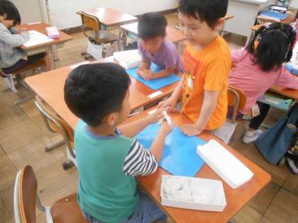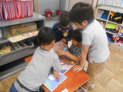 雨が続き,外で遊ぶことができません。でも,教室でも楽しく遊んでいます。