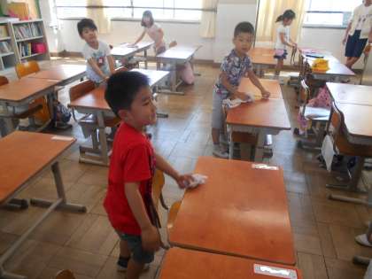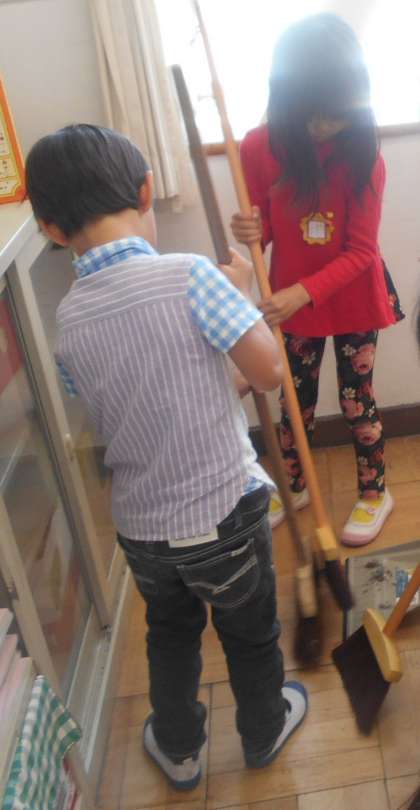少しずつ,自分たちで掃除をしています。今日は花壇の草ぬきもがんばりました。
