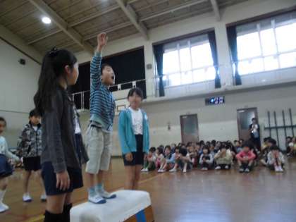 2〜6年生のお兄さん,お姉さんからの歌やアサガオの種のプレゼントにみんな大喜びの