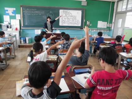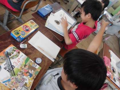 方位磁針の使い方を知り,校区探検に出かける準備をしました。