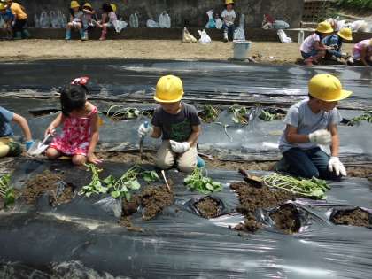 5月19日 2年 生活「さつまいもの苗つけ」