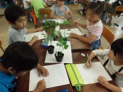 みんなの花壇で育てる野菜が決まり,みんなで観察しました。